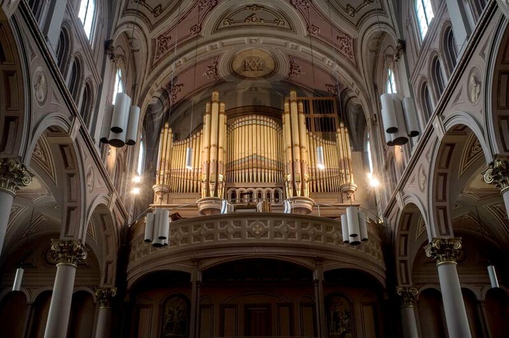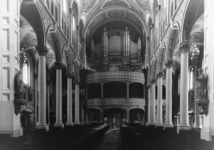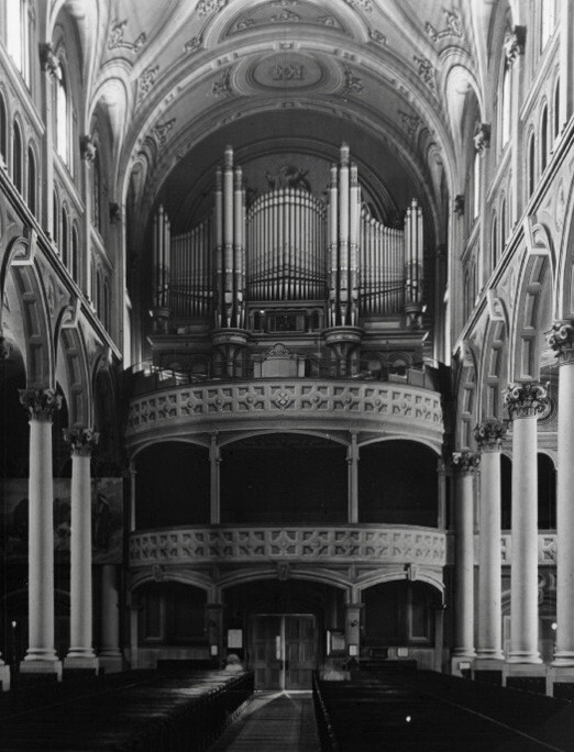 ![]() L'arrière de l'église en 1910 et avant l'ajout du 4e clavier / The rear of the church in 1910 and before the addition of the 4th manual Photo: Archives de la ville de Montréal |