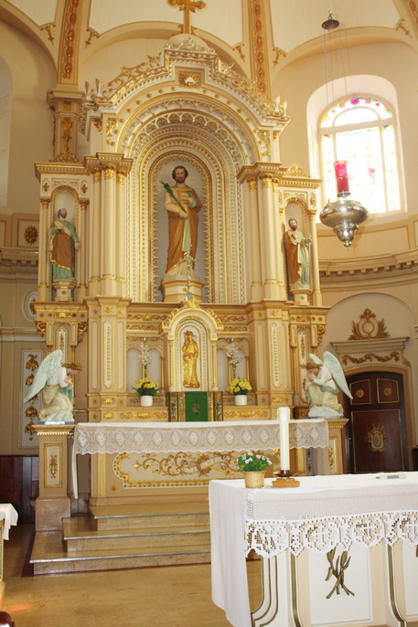 Choeur de l'église actuelle avec couronnement du maître-autel (1940)Church chancel with its crowned main altar (1940) |