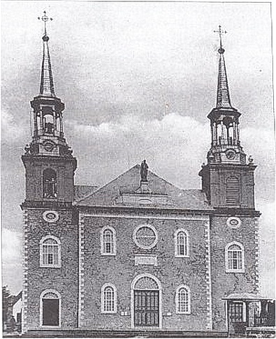 Église actuelle avec ses flèches originales (1947)Actual church with its original spires (1947) |